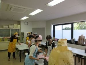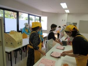 小野田地域交流センター(市民館)で、今年度1回目の給食宅配がありました。小野田地区の民生児童委員や福祉員の方々を中心に準備をされ、各自治会の75歳以上の独居高齢者の希望される方に、一部実費で給食宅配をしました。民生児童委員の方々が飾りの紙をつけて各地区に仕分けたお弁当を、福祉員や自治会長のみなさんが各自宅にお届けしました。年3回の給食宅配で、毎回楽しみにされている高齢者の方も多くいらっしゃいます。