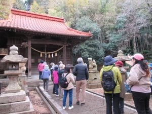 早春の青空の下、ふれあいウォーキング大会を行いました。今回のコースは沖中川・六十番自治会館(発)⇒小野田橋ポケットパーク⇒松江八幡宮⇒旦の皿山 陶工甚吉の墓(遠望)⇒旦の皿山 旧姫井製陶所バック⇒旧江本製陶所登り窯⇒前原一誠旧宅跡(遠望)⇒自治会館(着)で、各場所で説明を聞きながら、約2時間のウォーキングを楽しみました。自治会館に戻ると、民生委員、福祉員さん手作りの豚汁が待っていました。(おいしかった~)最後はビンゴ大会で大盛り上がりでした❣