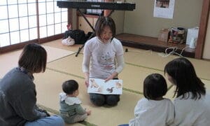 カラフルなフラフープにボールなど、色々な小道具が子どもたちの興味を引き付けます。やはり絵本は大好きで、特に動物の絵本は、7か月の子どもも夢中になります。リトミックは本当に子どもの感性を育むと思います。そしてママも子どもも笑顔になります(*^^*)